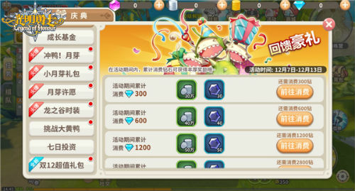 各位萌主大人,双十二系列活动已经开启!Q萌坐骑、精致的小恶魔之翼时装、海量的珍稀道具以及活动限定称号,应有尽有!快加入《光明勇士》,与我们一起冲鸭!